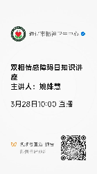 为提高公众对情感障碍的认识,增强大众的心理健康意识,我院定于2024年3月29日全天开展双相情感障碍日义诊活动。届时,我院情感障碍科专家将提供免费的医疗咨询和筛查服务,并开展上述疾病的家庭心理评估,评估家庭因素在疾病发生发展过程中的影响度,并给予适当的心理治疗。